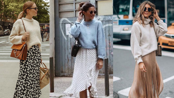 Наиболее трендовым вариантом многослойного образа станет сочетание летнего платья с водолазкой и другими теплыми вещами. Начнем с того, что платье в бельевом стиле может стать основой в многослойном образе. Такое платье с тонкими бретелями хорошо смотрится с водолазками – образ получается женственным, но достаточно теплым и комфортным.