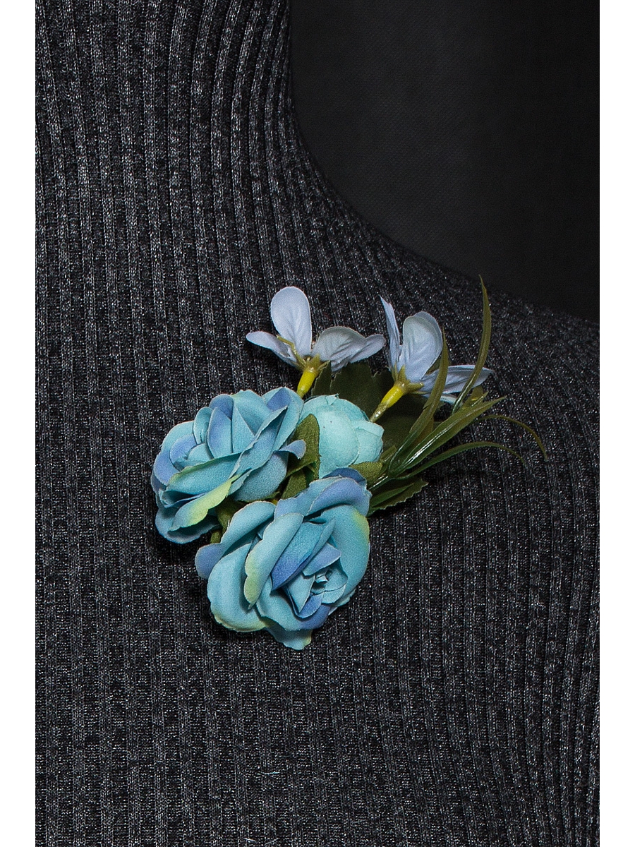 Цветочные композиции прочно поселились в летнем женственном гардеробе. Привлекающий внимание аксессуар - букетик роз голубых и салатовых оттенков.