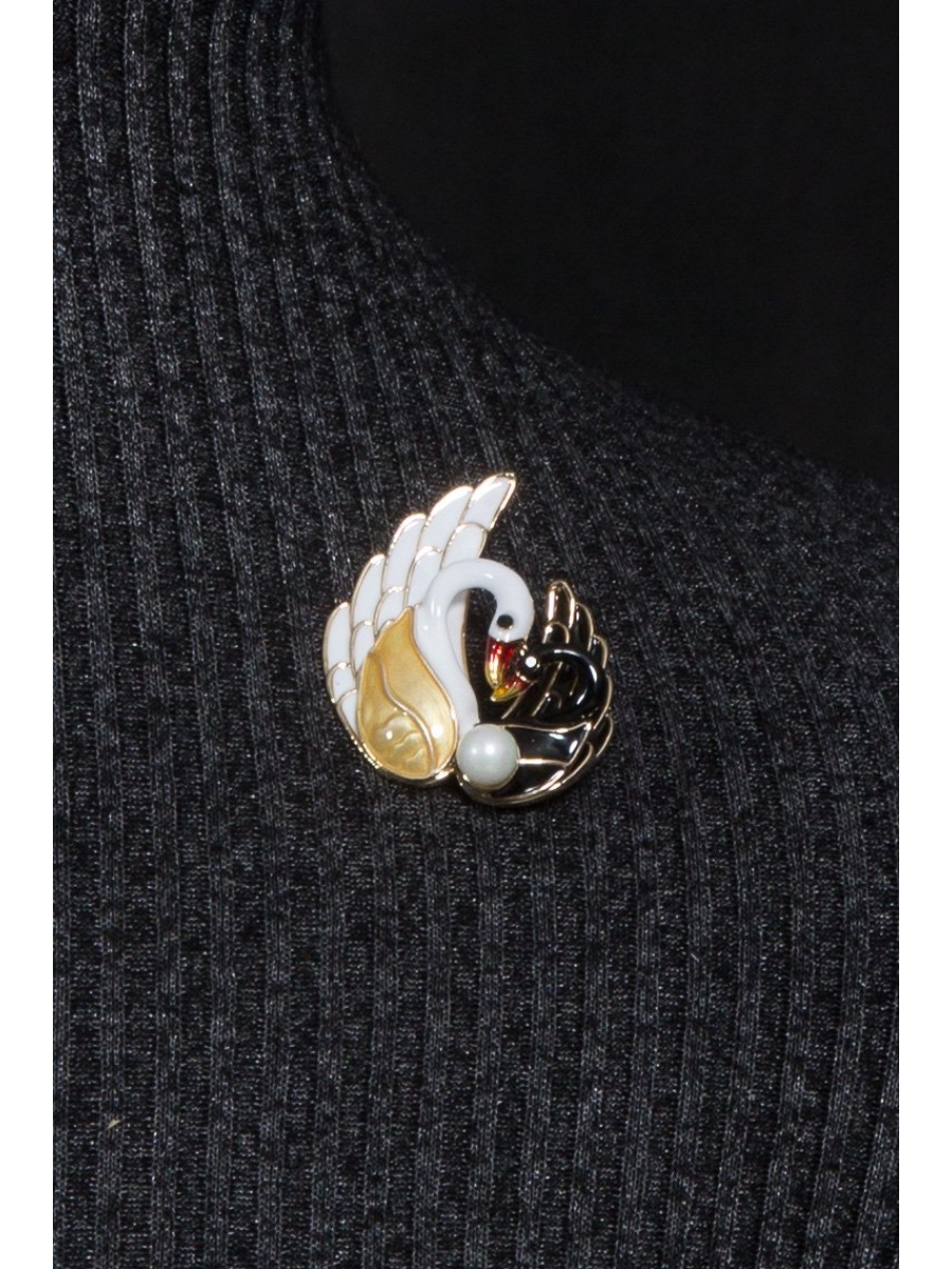 Чудесная брошь в виде пары лебедей украшена жемчужиной и эмалью.