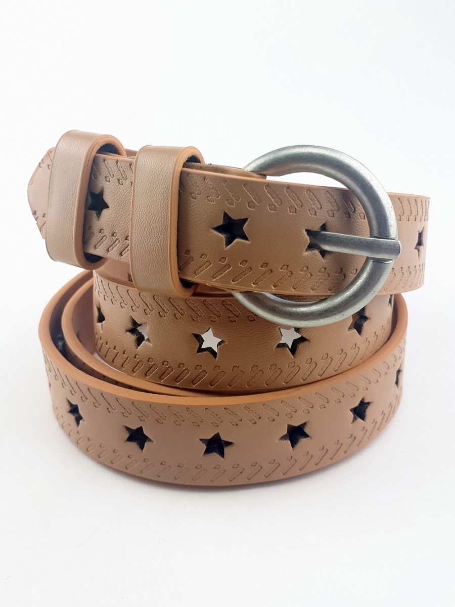 Ремень из экокожи светло-бежевого цвета с перфорацией.