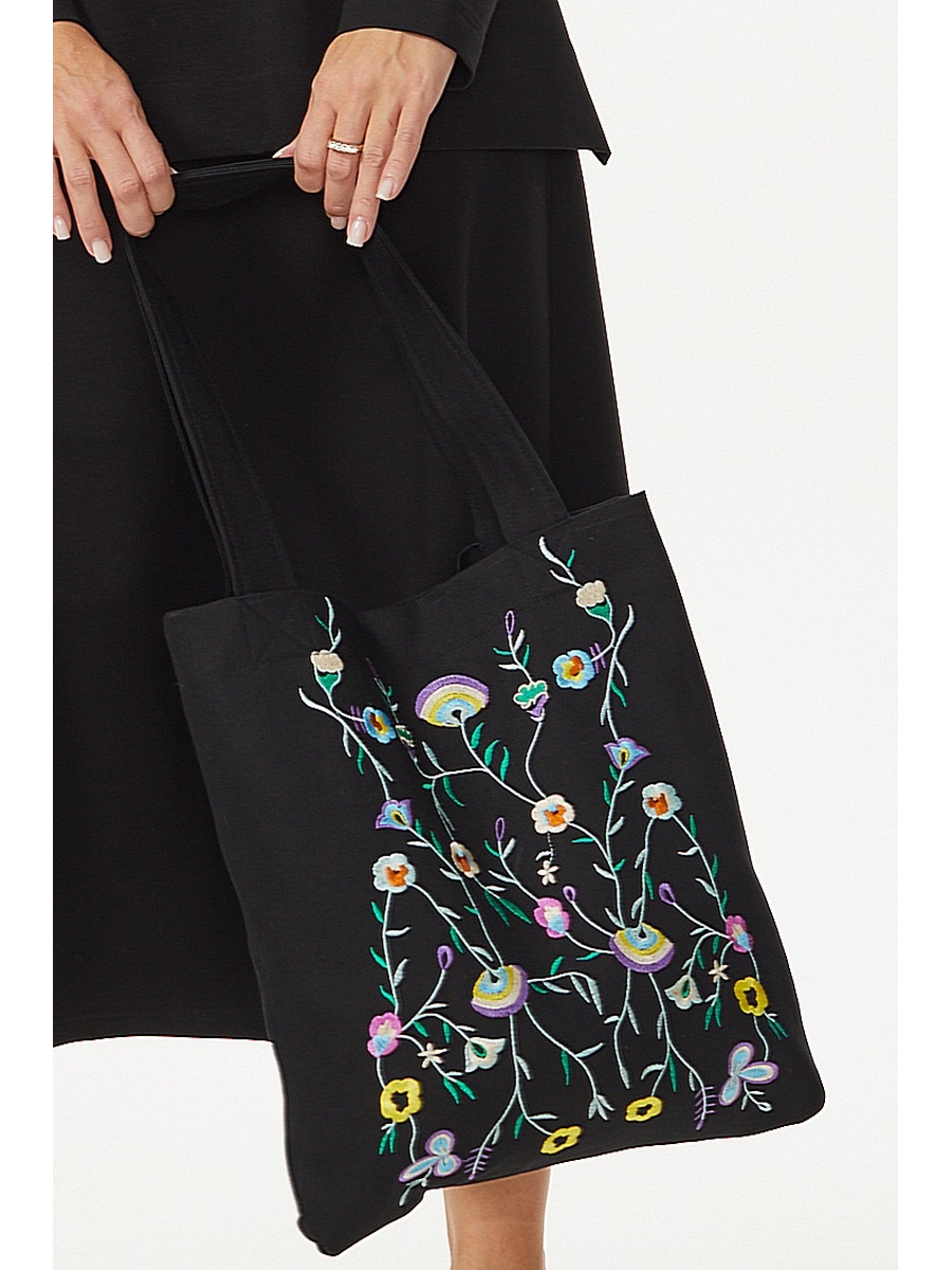 Шоппер прямоугольной формы с одним отделением, крепкими и и длинными ручками. Закрывается на ""магнит-кнопку"". Украшен декоративной дизайнерской вышивкой ""веточки"".