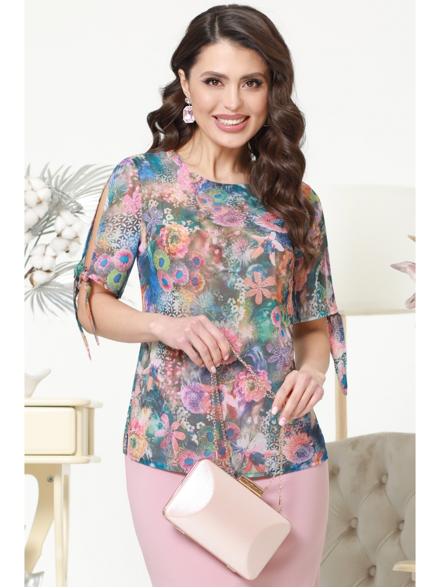 Легкая элегантная блузка из крепа для ваших летних образов. Свободный крой позволяет носить ее навыпуск и заправленной, сочетать с брюками и юбками. «Изюминка» блузки - короткий рукав с разрезом и завязками, которые не только позволят регулировать его ширину по вашей руке, но и сделают ваш повседневный образ более нарядным.