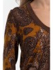 Уютный джемпер полуприлегающего силуэта из трикотажного полотна коричневого цвета. V-образный вырез, низ изделия и рукавов обработаны манжетами выполненными в технике ручного вязания. Длина изделия по спинке от плечевого шва до низа изделия — 60 см. Рост фотомодели — 170 см.