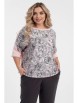 Яркий джемпер свободного силуэта. Перед изделия выполнен из трикотажа с набивным рисунком. Круглый вырез изделия обработан воротником выполненным в технике ручного вязания чулочным переплетением. Изделие со спущенной проймой и втачными рукавами. Спинка изделия и рукава выполнены в технике ручного вязания из нитей с содержанием шерсти. По бокам изделия - разрезы. Длина изделия по спинке от плечевого шва до низа изделия — 58 см.