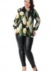 Стильная рубашка полуприлегающего силуэта из текстильного полотна черного цвета с цветочным принтом. Отложной воротник, планка и манжеты выполнены из однотонного черного трикотажного полотна. Втачные рукава выполнены из цветного шифона и обработаны манжетами с застежкой на пуговицу. Перед изделия дополнен планкой с застежкой на пуговицы.