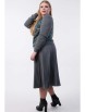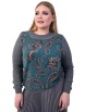 Привлекательный джемпер-свитшот свободного силуэта из трикотажного полотна серо-синего цвета. Круглый вырез изделия обработан «резинкой». Джемпер-свитшот с втачными рукавами. По низу рукавов и низу изделия — манжеты. «Резинка» по горловине, рукава и манжеты выполнены в технике «ручного вязания».