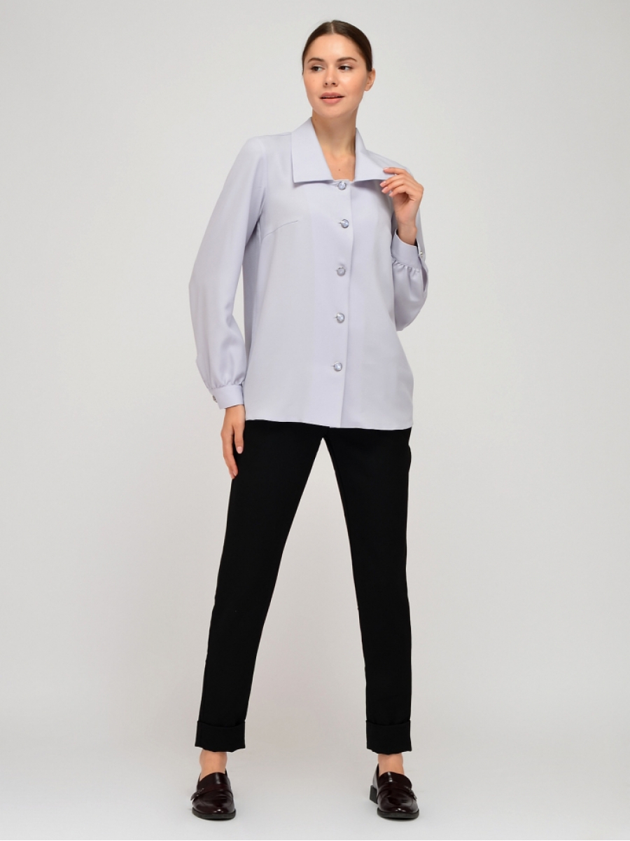 Прямая блузка с фигурным вырезом.Прямая блузка с фигурным вырезом - беспроигрышный вариант для современного офисного стиля. Аккуратный отложной воротник и длинные рукава составляют строгий деликатный образ. Ткань блузки лёгкая и воздушная, что придаёт образу утончённости и элегантности. Классическая блузка на пуговицах стильно будет смотреться при любых обстоятельствах.Вырез - фигурный. Отделка горловины - воротник. Воротник отложной. Рукав длинный. Рукава втачные. Вид застёжки - пуговицы. Декоративный элемент - пуговицы. Крой прямой. Рекомендована стирка при температуре не более 30С.Дополнив блузку жакетом, юбкой карандаш или классическими брюками, Вы создадите строгий деловой образ. С помощью прямой блузки с фигурным вырезом также можно создать стильный городской образ. Заправьте её в джинсы на высокой талии, наденьте туфли с острым носом на высоком или на низком ходу.