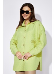 Рубашка женская, прямого силуэта с длинным рукавом. Рукав со спущенной линией плеча, по низу на манжете. Манжета с застежкой на кнопках. Горловина оформлена отложным воротником на отрезной стойке. Застежка центральная на кнопках. По переду один накладной карман задекорированный вышивкой. По боковым швам разрезы. По переду линия разреза скругленной формы. Спинка без особенностей.