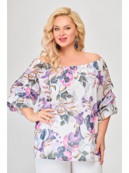 Блузка женская свободного кроя, с рукавом реглан, со сборкой по горловине. Рукав объемный, драпированный мягкими складками. Низ рукава и вырез горловины присобран на эластичную тесьму.