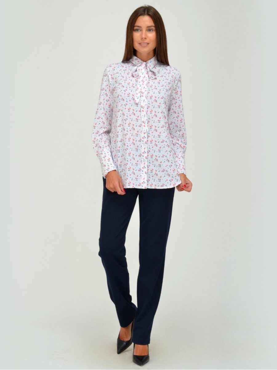Блузка прямого силуэта со съемным галстуком-поясом. рукав длинный на манжете.Воротник отложной на стойке.На спинке встречная складка.