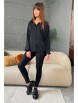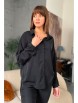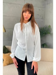 Блузка женская из текстильной ткани, прямого силуэта. В боковых швах расположены разрезы. Спинка блузы длиннее переда. Рукав одношовный,низ рукава обработан манжетой на петлях-поговицах. Вырез горловины обработан воротником со стойкой, по переду горловины сборка. Застежка блузы на петлях-пуговицах.