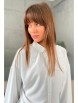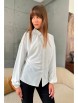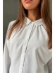 Блузка женская из текстильной ткани, прямого силуэта. В боковых швах расположены разрезы. Спинка блузы длиннее переда. Рукав одношовный,низ рукава обработан манжетой на петлях-поговицах. Вырез горловины обработан воротником со стойкой, по переду горловины сборка. Застежка блузы на петлях-пуговицах.