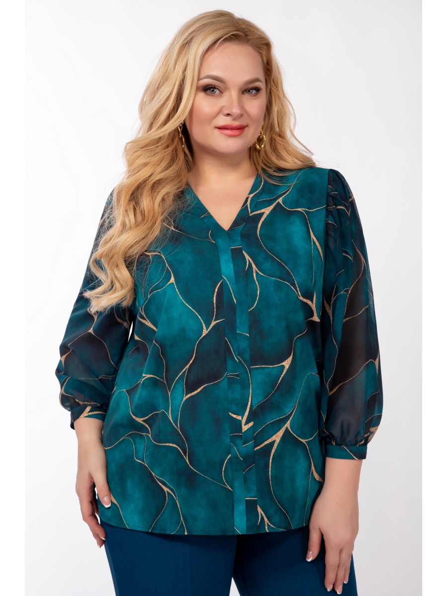 Универсальная базовая блузка прямого силуэта из легкой принтованной