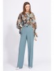 Блузка выполнена из креп-шифона с рисунком. Блузка прямого силуэта до линии бедер . Перед цельный, с отрезными кокетками по верху и складками от кокеток. Воротник-стойка, переходящий в бант. Рукав втачной, одношовный, расширенный книзу. Низ рукава на манжете, переходящей в бант. По боковым швам блузки - разрезы. Блузка на подкладке в виде топа на регулируемых бретелях.