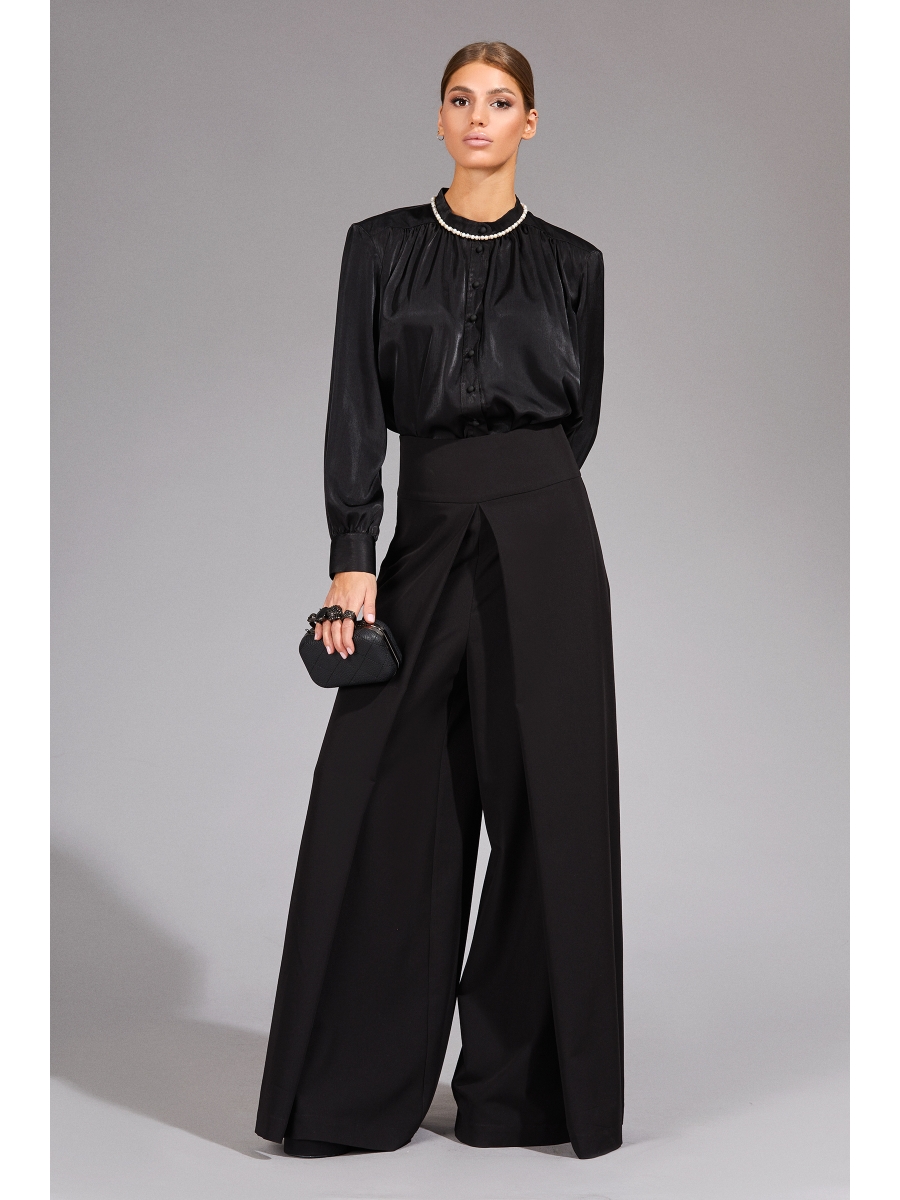 - свободный рукав со сборкой по низу, манжетой и застежкой на петлю и пуговицу
