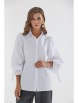 Блузка из хлопчатобумажной ткани прямого силуэта. Воротник рубашечного типа на притачной стойке. Перед блузки с нагрудными вытачками и потайной центральной застежкой на петли и пуговицы. Рукав втачной длинный, расширенный книзу, со сборкой по окату, с декоративной завязкой в области запястья.