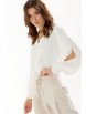 Стильная блузка прямого силуэта, из струящейся ткани, с фигурным низом. Горловина с V-образным вырезом, по переду декоративная планка. Рукав с декоративным разрезом и пуговицами, с застежкой на манжете.