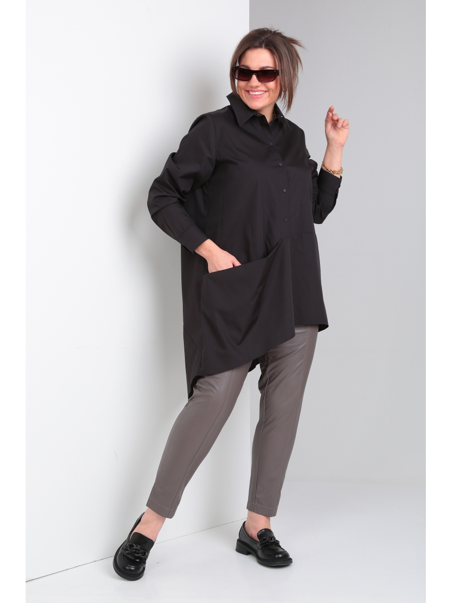 Блуза от GRATTO в черном цвет добавляет романтики деловому или casual-образу. Она легко адаптируется под образ в самых разных стилях и гамме. Воротник рубашечный, на отрезной стойке. Рукав втачной слегка со спущенным плечом на манжете. Манжеты фигурные и застегиваются на кнопку и пуговицу. В области талии косой подрез по кругу изделия. Низ фигурный с косым углом. По переду справа от подреза объемный свободной формы карман. Рубашка подойдет к юбке, брюкам, джинсам, леггинсам, шортам и станет подходящим вариантом для вечерних или торжественных мероприятий. Может использоваться как для прогулки на каждый день, на учебу, в кино, в ресторан, на вечеринку, на свидание, стоит лишь подобрать соответствующие аксессуары.