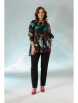 Блузка трапециевидного силуэта из текстильной креповой вискозы с дизайнерским принтом. Перед с накладным карманом, центральной застежкой на петли-пуговицы, воротником рубашечного типа и стойкой. Планка под застежку выполнена из отделочной ткани. Чуть приспущенная линия плеча и крой блузки делают ее особенно комфортной. Спинка удлиненная, с фигурным низом.
