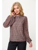 Стильная блузка офисного типа, прекрасно сочетается с брюками, юбками, жилетами. Модель полуприлегающего силуэта с воротником по горловине с застежкой каплей на одну пуговицу по спинке, по переду комбинированная ткань (основная+подклодочная в виде блузочного однотона). Спинка цельнокроеная. Рукав втачной, полной длины с притачной манжетой, застегивающейся на пуговицу. Модель актуальна круглый год.