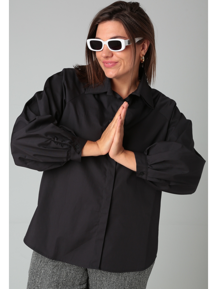 Рубашка в стиле оверсайз с пышными длинными рукавами - фонариками и спущенным плечом станет главным элементом вашего гардероба этой осенью. Рубашка из хлопковой ткани и идеальна для носки в осенний и зимний сезон. Модель прямого силуэта, слегка расширена к низу. Длинный свободный рукав реглан, внизу рукава бантовые-складки, придающие рукаву объем, рукав заканчивается манжетой, застегивающейся на пуговицу. Необычность рубашки придает двойной воротник рубашечного типа на отрезной стойке. Застежка центральная с потайной пуговичной планкой. С ней можно создать множество образов - от делового до нарядного. Она вписывается в офисный дресс - код. В рубашке со стильным дизайном можно отправиться на свидание, принять дома гостей или надеть в офис. Однотонная рубаха продается в 2 базовых цветах, она практичнее, чем вещи с принтом. В размерной сетке есть большие размеры для полных девушек. Она станет отличным подарком на любой праздник для ваших родных и близких .