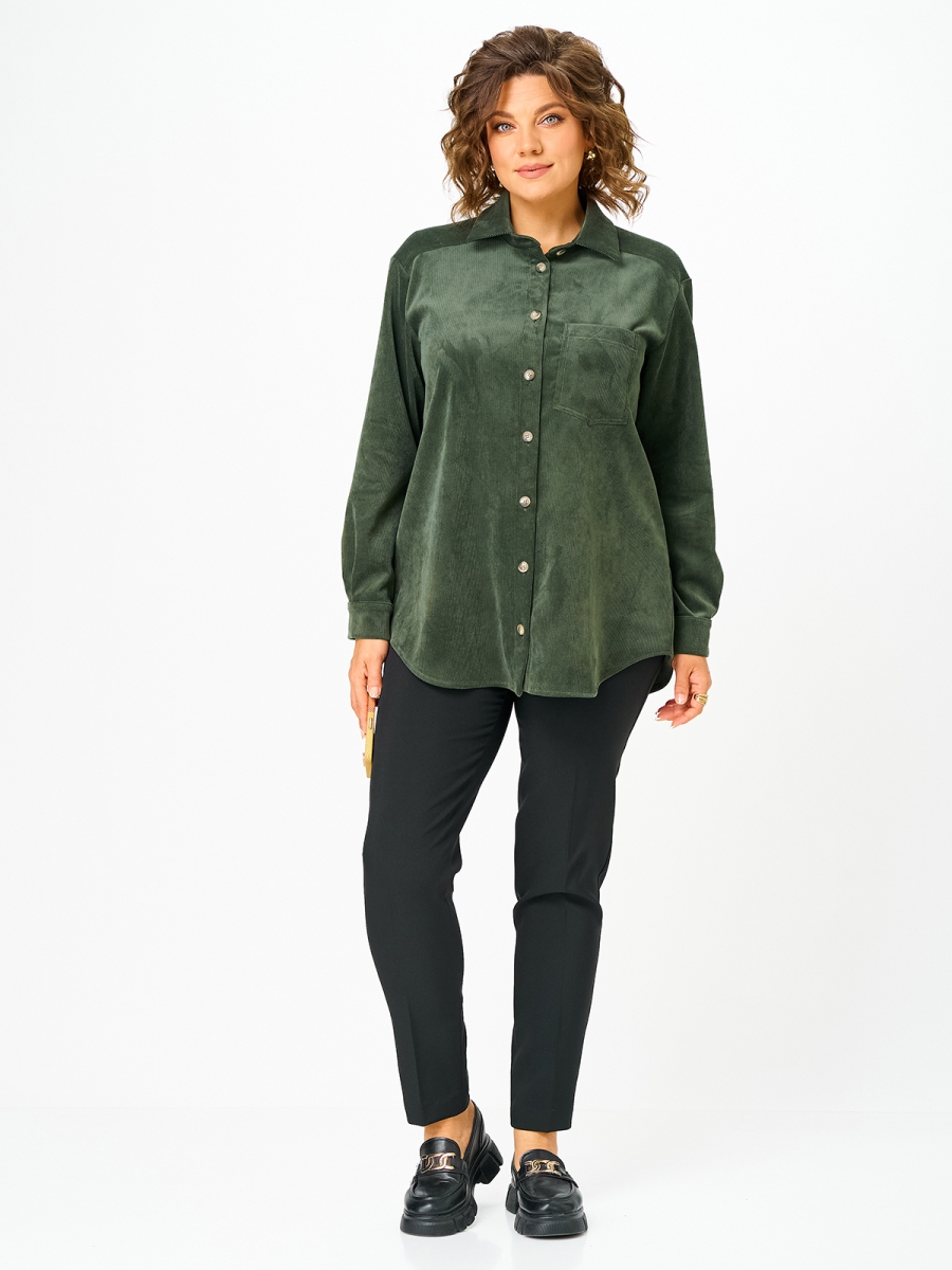 Стильная женская блузка рубашечного типа. Силуэт свободный, удлиненный. Низ фигурный. Рукав спущенный, длинный. Застежка на пуговицах. На полочке кокетка, накладной карман. По спинке кокетка со встречной складкой. Блузка хорошо сочетается с юбкой, брюками или джинсами. Модель блузки подходит на любой тип фигуры и на любой рост. При подборе необходимого размера, используйте таблицу обмерных данных в готовом виде. Чтобы перейти в общий каталог моделей, нажмите на иконку бренда в карточке товара. Спасибо, что выбираете ZLATA!