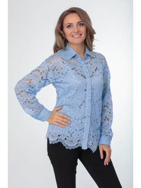 Блуза из ажурного кружева с топом. Изысканно смотрится, выступая сольно, освежая образ, так и в дуэте с жакетом, беря на себя роль отделки. Полуприлегающий силуэт, спущенный рукав на манжете, супатная застежка, отложной воротник на стойке.Дополнена топом в тон кружева.Верх – кружево. Под верхней блузкой – топик на брителях, которые регулируются.
