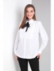 Стильная блузка свободного кроя с центральной потайной застежкой на петли и пуговицы. Верхняя часть блузки кокетка. Спинка цельная. Рукав втачной с притачной манжетой. Воротник отложной. Низ блузки фигурный с широкой обтачкой. Отделкой служит завязка бант в области шеи.