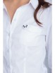 Блузка классического покроя. Полочки с нагрудными вытачками от низа, накладными карманами с закруглёнными краями. Спинка с талевыми вытачками и цельнокроеной кокеткой, переходящей на полочку. Воротник на стойке, застежка на пуговицы на цельнокроеной планке. Рукава втачные с манжетами на пуговицы, рукав регулируется патой на пуговицу.