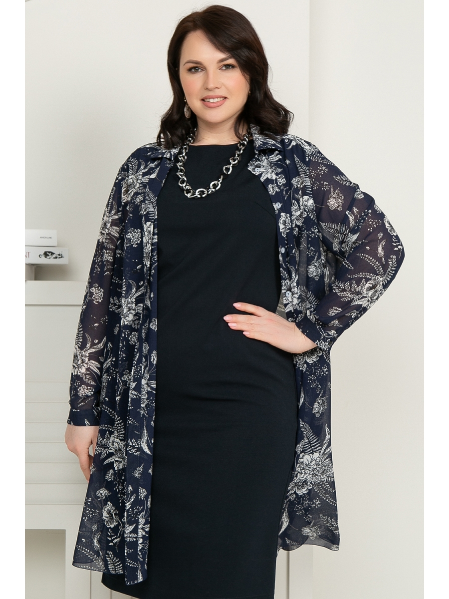 Блуза женская прямого силуэта с закругленным низом по переду и спинке . Перед по центру с супатной застежкой на петли и пуговицы. Спинка с двойной кокеткой. Рукав втачной, длинный, по низу на притачной манжете, застегивающейся на петлю и пуговицу. Воротник на стойке, застегивающейся на петлю и пуговицу.