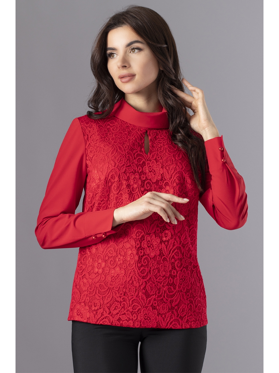 Блуза женская, полуприлегающего силуэта, с застежкой по спинке на пуговицу.