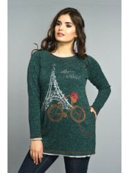 Блуза женская, удлиненная. Рукав втачной, одношовный, реглан. Горловина круглая, углубленная. В боковых швах переда обработаны карманы по скругленной линии. Вход в карман и мешковина отделаны распошивочной строчкой, мешковина кармана крепится, таким образом, к полочке.