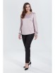 Блузка женская прямого силуэта с горловиной о форме "лодочка". Перед с нагрудными вытачками от боковых швов. Спинка со средним швом, вверху которого выполнен разрез, застегивающийся на навесную петлю и пуговицу. Рукав втачной одношовный, длинный со складками по окату и на резинке с гребешком по низу.