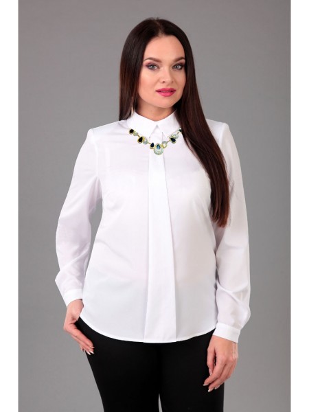 Блуза женская прямого силуэта , с нагрудными выточками. Воротник втачной на стойке. По центру полочки обработана бантовая складка украшенная возле горловины прицепными на карабины подвесами. Застежка центральная по спинке на потайные пуговицы по стойке. Рукав втачной , с приточным манжетом.