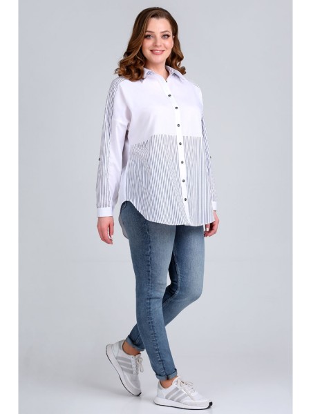 Модная рубашка-туника свободного силуэта с элементом вышивки на спине.