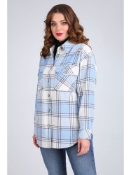 Рубашка с центральной застежкой на центральнокроеную планку. Плече спущено, пройма занижена. Рукава на манжете с фигурными краями. Воротник рубашечный на стойке. В изделии на полочках настрочены нагрудные карманы. Над карманом настрочен клапан, который закрывается на пуговицу.