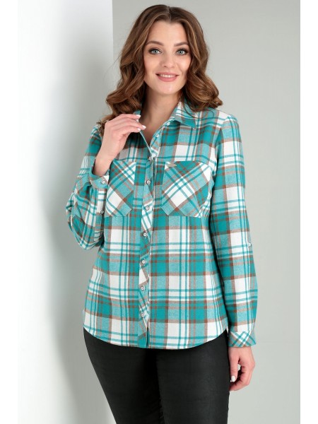 Рукав втачной с притачным манжетом, длину которого можно отрегулировать «патой».На спинке обработаны талевые вытачки,а кокетка спинки двойная. Воротник на стойке, рубашечный. В изделии настрочены нагрудные карманы с фигурными углами.