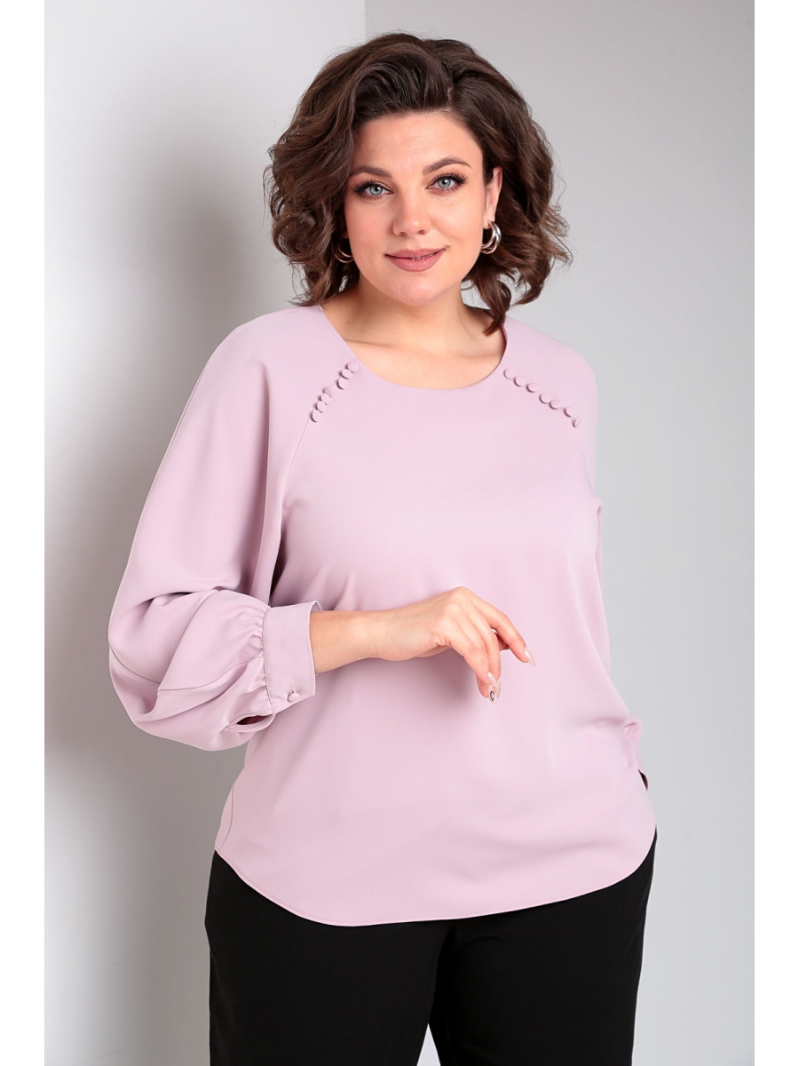 Горловина, углубленная, круглая обработана обтачкой. Рукав – реглан, по низу присборен на манжет. В качестве украшения, по шву втачивания рукава, от горловины, по переду, пришиты декоративные пуговки.