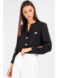 Женская блузка полуприлегающего силуэта с элегантными деталями.