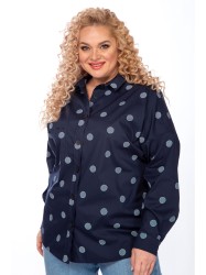 Нежная блузка свободного кроя, которая прекрасно вольется в повседневную жизнь и станет одной из любимых базовых вещей в Вашем гардеробе. Блузка выполнена из натуральной хлопковой ткани в горох. Спущенный длинный рукав, присобранный на манжету с пуговицами. По переду блузка украшена накладным карманом, застегивается на пуговицы. Спинка прямая, воротник классический. Изделие хорошо сочетается как с брюками, так и с юбками. Светлый цвет придаст Вашему образу женственности и нежности.