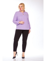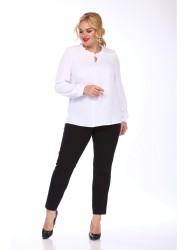 Блузка женская прямого силуэта с втачными одношовными рукавами. Низ рукавов обработан притачной манжетой с петлей и пуговицей. Перед со средним швом, украшенным бусинами, и нагрудными вытачками, выходящими из бокового шва. Горловина округлая, обработана узкой оборкой, переходящая в застежку на навесную петлю и пуговицу. Спинка цельная. По низу боковых швов обработаны разрезы.