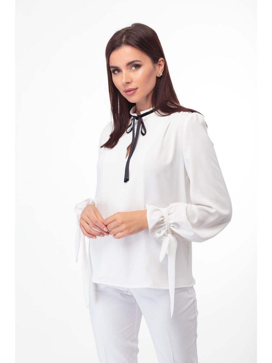 Блуза представлена в образе вместе с брюками Anellistyle – 228 белого цвета.