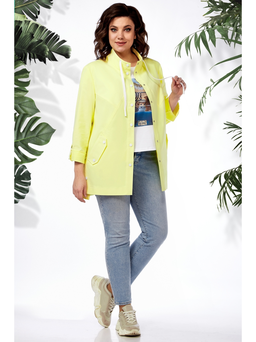 Рубашка женская прямого силуэта с длинным втачным рукавом и центральной застёжкой на 7 кнопок, выполнена из джинсовой ткани. Перед с фигурными рельефами, в швах рельефов карманы с декоративными клапанами и кнопками. От бокового шва на перед идут подрезы с кнопками, заканчивающиеся шлицами .Спинка удлиненная ,с кокеткой и вертикальными рельефами от нее. На левом рукаве нежная вышивка. Низ рукавов с отворотами на длину 3/4 и патами с кнопками. Воротник-стойка с кулисой и контрастным шнуром с наконечниками.