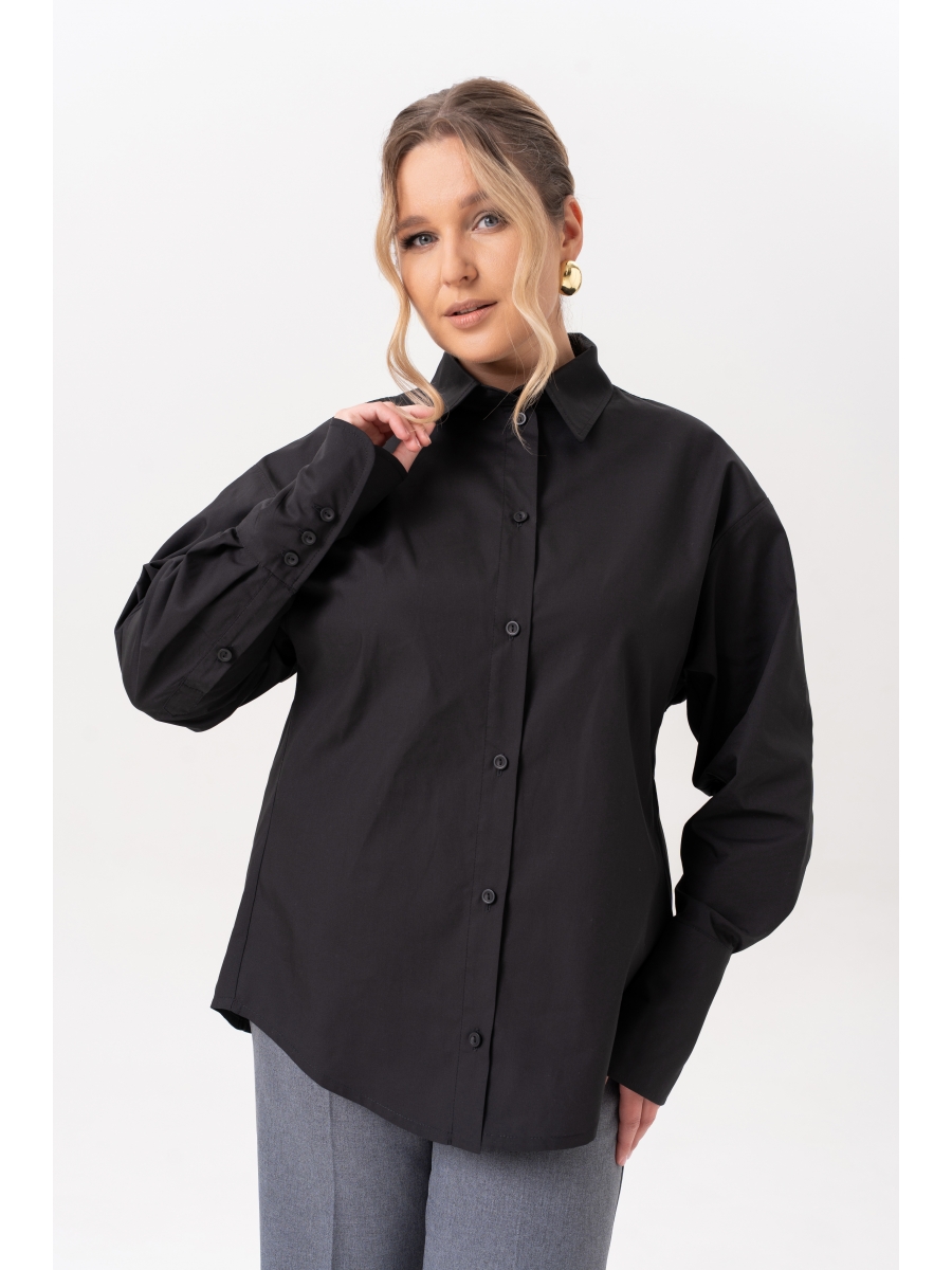 Рубашка оверсайз представляет собой универсальный выбор для современной женщины. Созданная из комфортного материала, эта рубашка обеспечивает идеальное сочетание стиля и удобства. Она отличается свободным кроем и посадкой, что делает её идеальным выбором для повседневного ношения, офисной работы или даже вечеринки. Отлично подходит работникам школы. Рубашка оснащена пуговицами и петлями для застегивания, что обеспечивает удобство в надевании и снятии. На рубашке обработаны воротник и манжеты. Спинка с кокеткой и встречной складкой. Отсутствие декоративных элементов делает её универсальной и подходящей для любого стиля. Гладкая фактура материала и длинные рукава добавляют элегантности и изысканности. Благодаря своему универсальному назначению, эта рубашка подходит как для офисного стиля,  так и для повседневного ношения, и в том числе на выход. Её однотонная структура и бескарманная конструкция делают рубашку идеальным выбором для тех, кто ценит простоту и стиль.