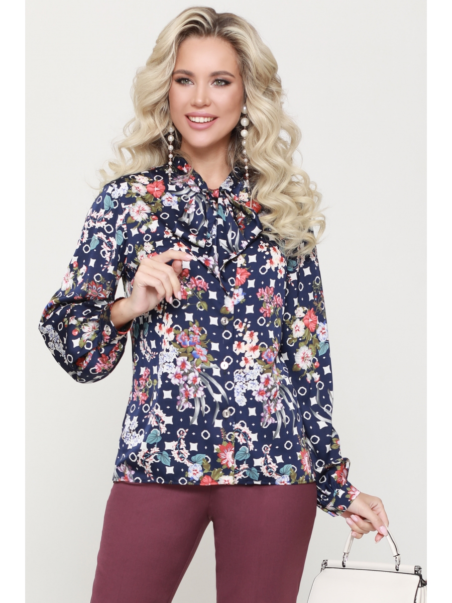 Элегантная блузка с воротником-галстуком на любой случай. Пышные рукава и возможность завязывать галстук бантом придают образу романтическую основу. Подчеркивает стиль и выбор ткани. Функциональная застежка на пуговицы и манжеты на них же, как в рубашке, отвечают за классику. А удобная длина и оформленный низ с небольшими разрезами по бокам позволяют одинаково успешно сочетать блузку с другими элементами гардероба как навыпуск, так и заправленную.