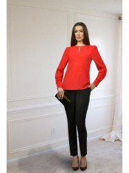 Стильная блузка офисного типа, прекрасно сочетается с брюками, юбками, жилетами. Модель полуприлегающего силуэта. С застежкой - одна пуговица на воздушной петле на спинке изделия. По переду нагрудные выточки, декорирована элегантной каплей, обработанной обтачкой. Спинка цельнокроеная.Рукав втачной, полной длинны с притачной манжетой, застегивающейся на две пуговицы.С окантованным круглым вырезом горловины. Модель актуальна круглый год.
