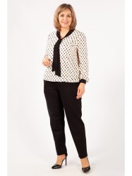 Блузка женская больших размеров, с воротником галстуком, занимает важное место в гардеробе каждой девушки, женщины. Классический крой блузы комфортно садиться на любую фигуру. Данная модель - всесезонная и дополнит ваш базовый гардероб универсальной вещью. Ее можно носить в осенне-зимний и весенне-летний сезоны. Длинные ленты у основания шеи можно завязать как бант, галстук, оригинальный узел или вовсе оставить свободными. Блуза приятна к телу, не мнется, выполнена из нежного шифона стрейч, галстук и манжеты из шелковистого трикотажа. Благодаря отлично проработанным лекалам блузка имеет идеальную посадку для полных женщин.