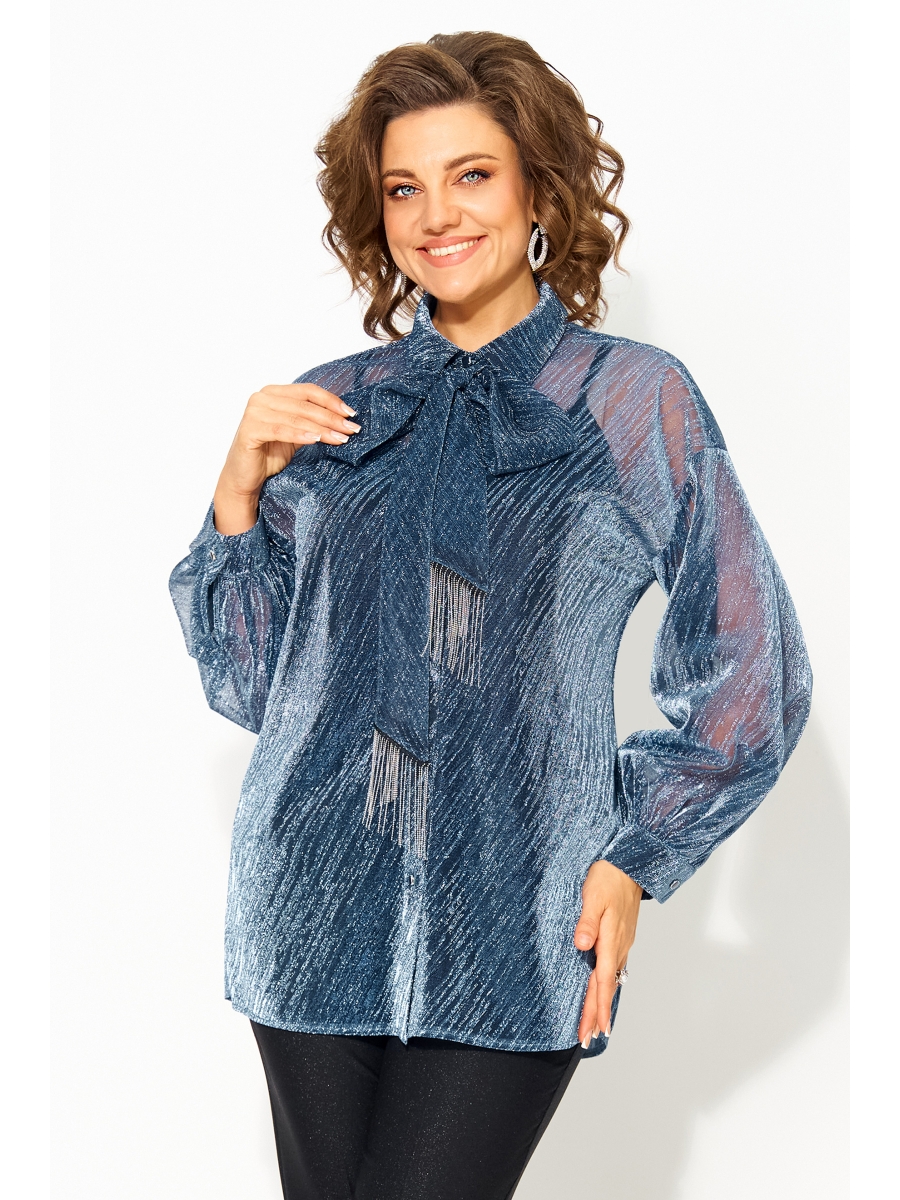 Трендовая блузка из легкой сетчатой ткани c эффектом мерцания станет стильным дополнением вашего гардероба. Ее можно комбинировать с различными элементами гардероба, накинуть поверх платья или топа. Модель выполнена с воротником-стойкой, который добавляет элегантности образу. Застежка центральная на петли и пуговицы. По бокам расположены разрезы. Свободный крой обеспечивает комфорт и подчеркивает женственность. Длинный рукав с манжетами делает ее универсальной для любого сезона, а удлиненный силуэт добавляет изысканности. В комплект входит съёмный пояс с декоративной бахромой, который может служить в виде шарфика и добавить элегантность образу.