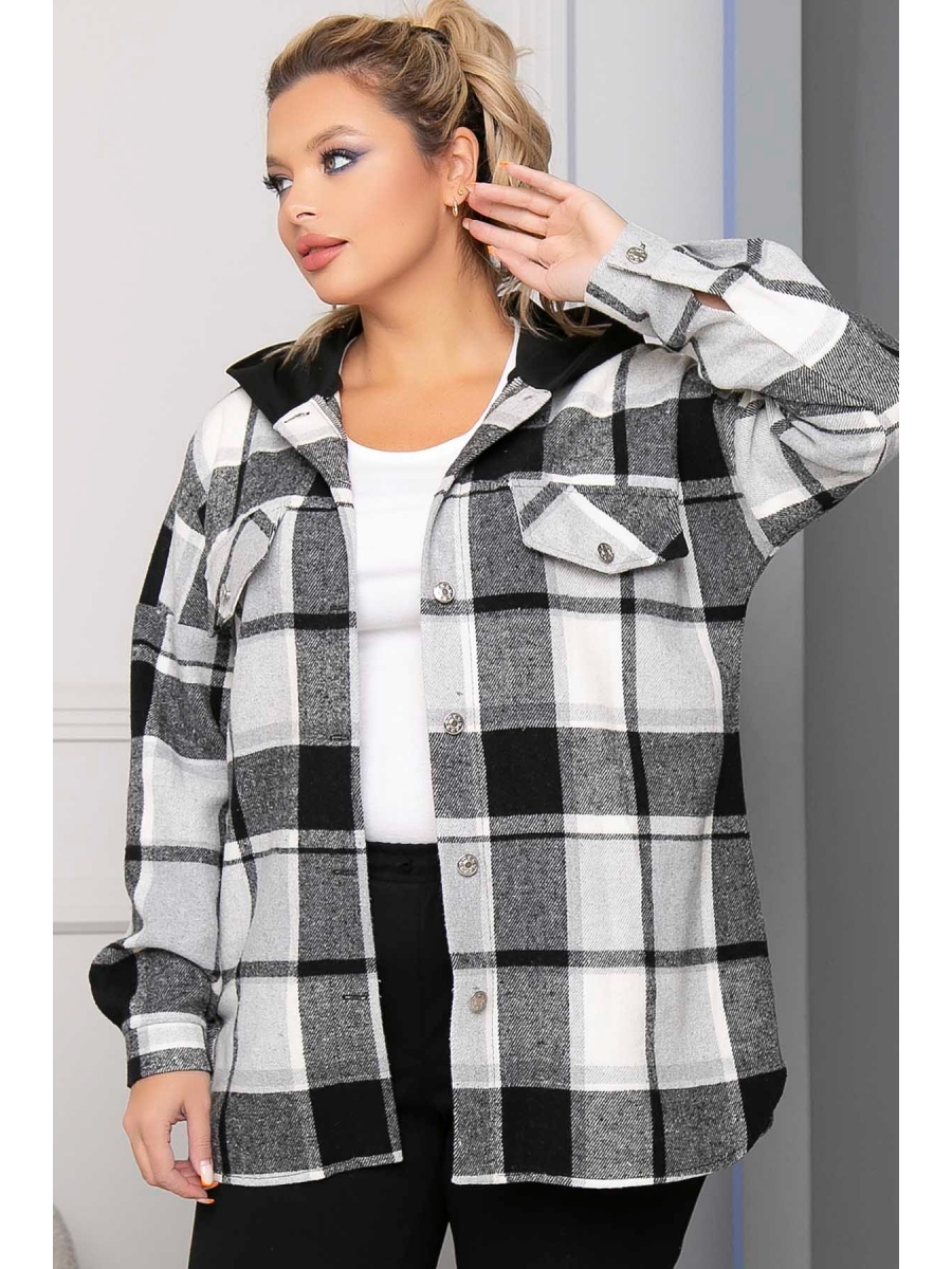 Рубашка из фланели в клетку свободного силуэта с капюшоном из футера.