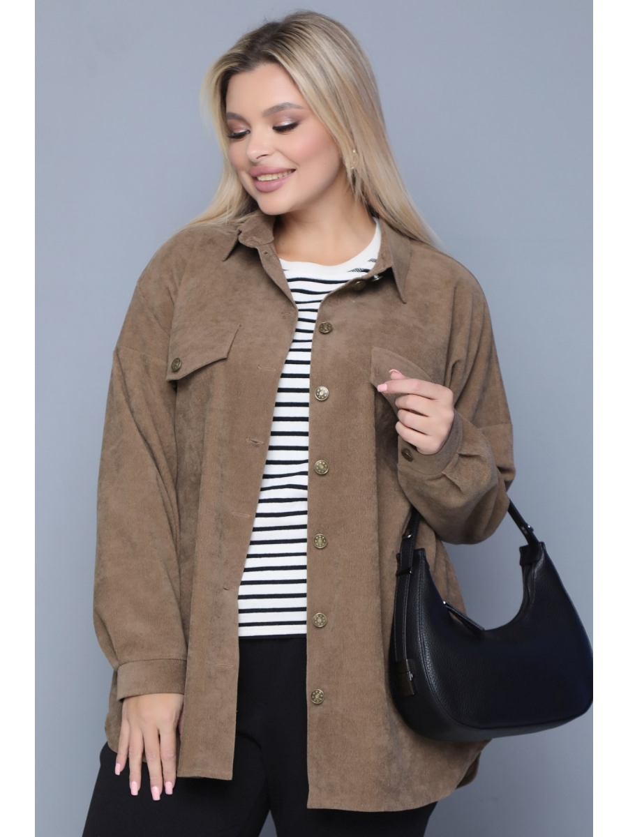 Рубашка свободного силуэта с отложным воротником на стойке из мелкого вельвета.